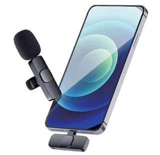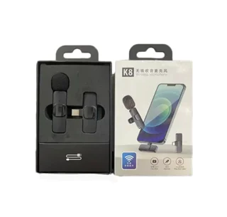 میکروفن یقه ای K8 بلوتوثی وایرلس وسیله ای برای انتقال و ضبط صدا از راه دور است. از این میکرفن وای فای بدون سیم می توانید برای ضبط صدا روی گوشی اندروید، آیفون و آیپد و هر دستگاه موبایلی که از پورت USB-C پشتیبانی می کند استفاده کنید.میکروفون یقه ای بیسیم همانطور که از نامش پیداست، یک میکروفن کوچک و جمع و جور است که بوسیله گیره به یقه لباس وصل می شود. میکروفن یقه ای بی سیم مدل k8 برای گوشی، متشکل از یک میکروفن، یک دریافت کننده صدا با کانکتور USB تایپ C که به گوشی و دستگاه های سازگار متصل می شود، یک مبدل با کانکتور لایتنینگ برای اتصال به گوشی اپل و یک کابل شارژ تایپ C برای شارژ می باشد. البته این مدل میکروفن k8 که در سایت ما به فروش می رسد، فقط دارای گیرنده گوشی با سوکت شارژ تایپ C می باشد. قیمت آن نسبت به مدلی که در آن دو گیرنده اندروید و آیفون با هم وجود دارند، ارزان تر است.این میکروفن یقه ای برای گوشی بی سیم تایپ C با اتصال به گوشی موبایل می تواند صدای شما را در فضای ذخیره سازی گوشی ضبط و نگهداری کند.