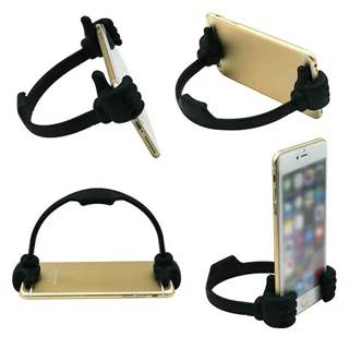 پایه نگهدارنده گوشی موبایل و تبلت مدل OK Stand برخلاف مکانیزم سادهاش، طراحی خلاقانه و جالبی دارد. OK Stand در حقیقت یک نوار پلاستیکی انعطافپذیر است که در دو انتهایش گیرههایی به شکل دست انسان دارد . از آنجایی که دهانه این محصول تا 21 سانتیمتر باز میشود، علاوه بر گوشیهای موبایل، بسیاری از تبلت های موجود در بازار نیز توسط این پایه پشتیبانی میشوند. گوشی ها را می توان به صورت افقی یا عمودی در این محصول قرار داد. از پایه نگهدارنده گوشی و تبلت مدل OK Stand استفاده های دیگری نیز می شود. کارت ویزیتهای را درون آن قرار داده و به عنوان نگهدارنده کارت ویزیت بر روی میز کار خود استفاده کنید.