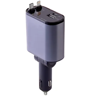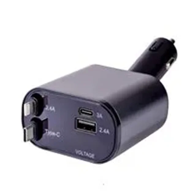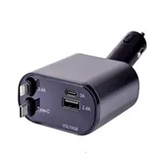 1- شارژ فندکی با دو کابل کششی تایپ C و لایتینگ مخصوص گوشی های آیفون 2- دو خروجی USB معمولی و تایپ C و3- نمایشگر ولتاژ 4- قابلیت چرخش از پایه. این شارژر به صورت Fast charge می تواند گوشی و دیگر تجهیزات را شارژ نماید.