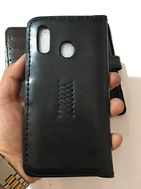 فضای کافی برای قرار دادن کارت ها، پول و عکس دور دوخت بودن کاور از دو طرف دارای سوراخ روی بلندگوی گوشی برای مکالمه راحت تر دارای بند با دکمه مگنتی دارای بند مچی